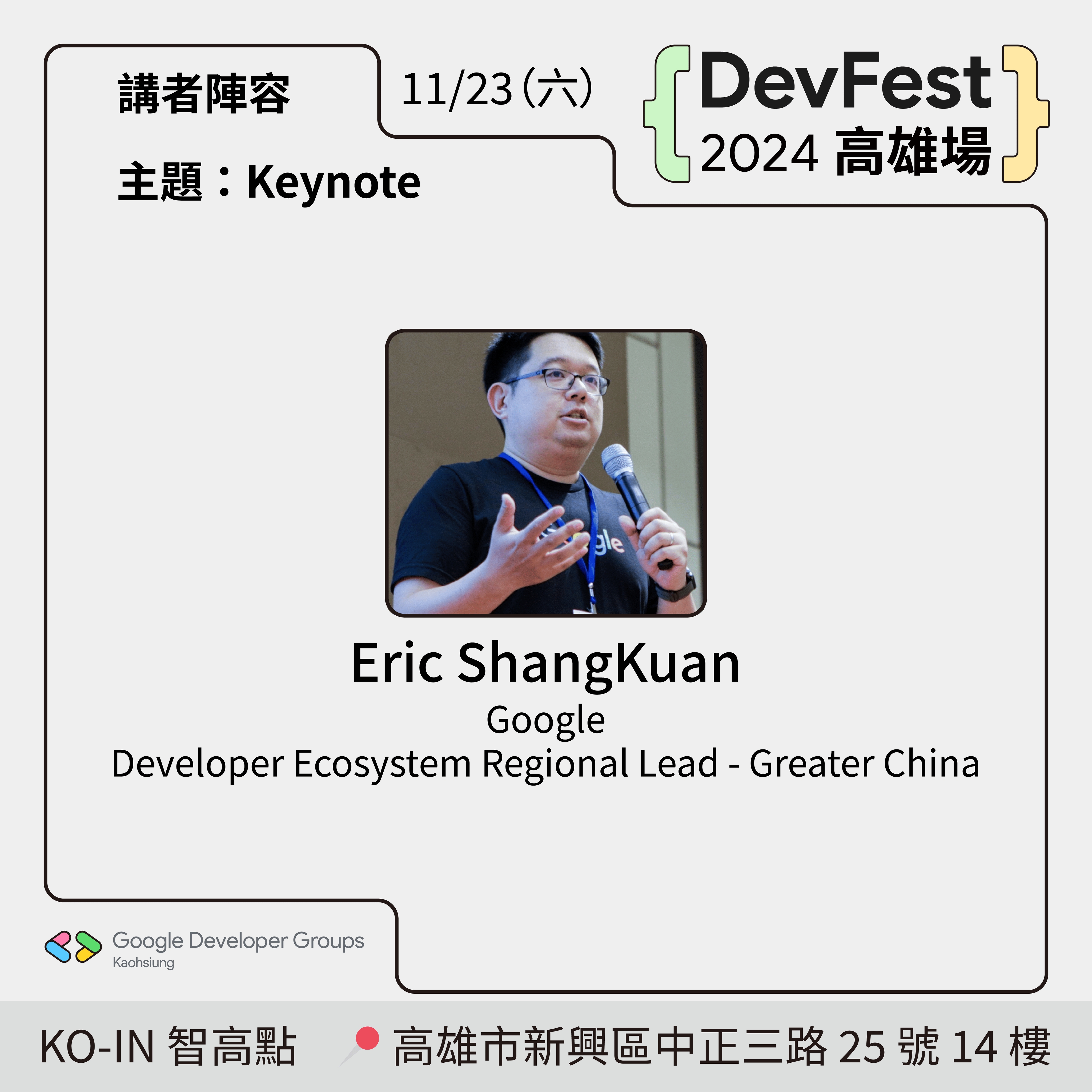 • 名稱:DevFest Kaohsiung 2024 / DevFest 2024 高雄場